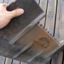 ストーブの下には火ばさみ。薪の補充時に薪の位置を変えたり熾きを広げたりする。また火かき棒も見える。火ばさみより力がいる時に使う。